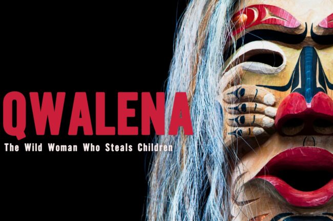 Our season opens at the Cultch Historic, Sept 21st, for an evening with Indigenous storyteller Dallas Yellowfly, who brings Qwalena: The Wild Woman Who Steals Children” to life in this unique and scary multimedia story-telling performance. I first met Dallas a few years ago when he told the tale of Qwalena on a winter’s eve…I was the one who shrieked in my seat. In a dark theatre immersed with echoes of a beating drum, Yellowfly evoked the tale of the Wild Woman who eerily whistles to hide her movements in the forest and steals children who search for her. By blending oral tradition, mature content, magic and a bit of humour, Yellowfly links the allegory of Qwalena stealing children to the actions of the Indian Agents who stole Indigenous children from their families and placed them into residential schools.