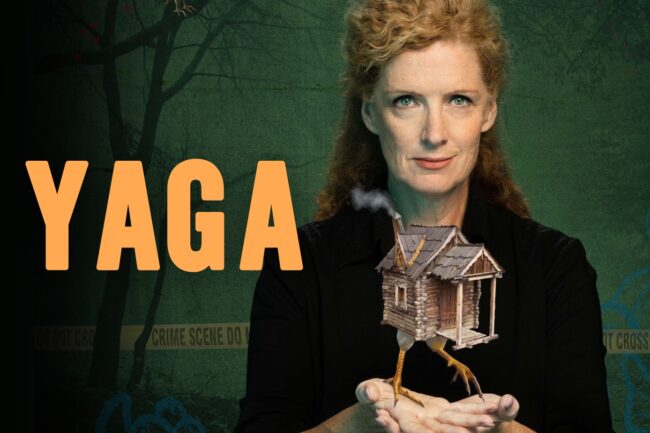 Yaga, by Kat Sandler, taps into the mythology of a different crone, Baba Yaga of Slavic descent, the witch who lives alone in the woods of Europe, grinding the bones of the wicked. Yaga taps into mythologies which have migrated with settlers. In this gruesome murder mystery, we are forced to confront our perceptions of aging, woman and wisdom.