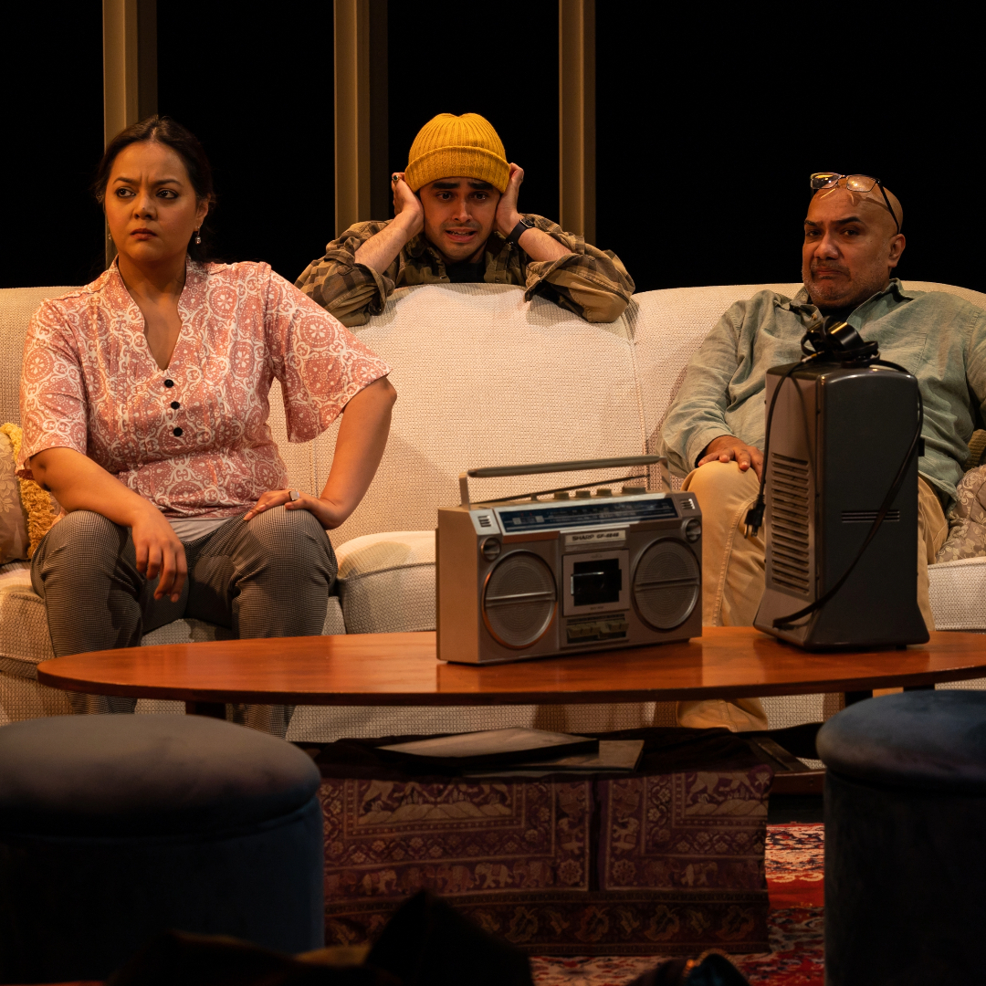 Pictured: Aman Mann, Leena Manro, Hussein Janmohamed, and Parm Soor in Touchstone’s 21/23 Flying Start production of The Wrong Bashir by Zahida Rahemtulla. Photo by Matt Reznek